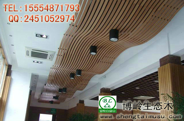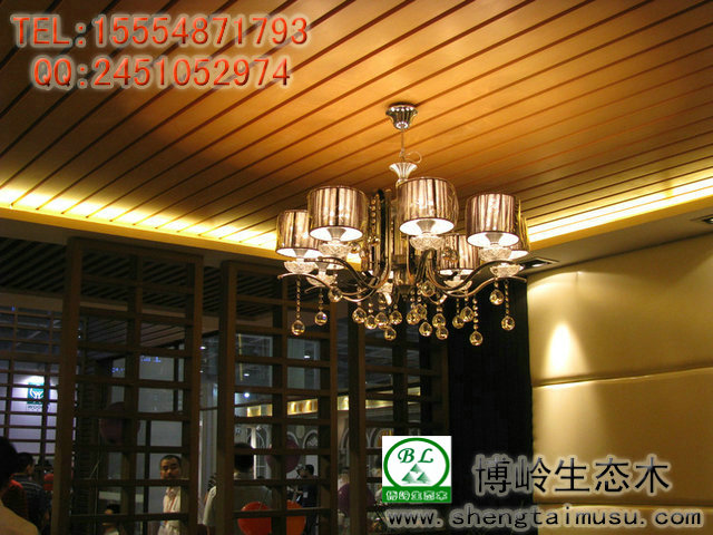生态木天花系列产品改变了传统的金属用材,以其清晰的纹理质感,优美的线条,柔和多样的色彩,体现出室内别具一格的风格